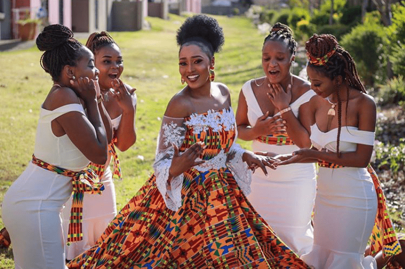 •  Integration of traditional fabrics, colors, and customs (Aso Oke, Kente, Gele, etc.)